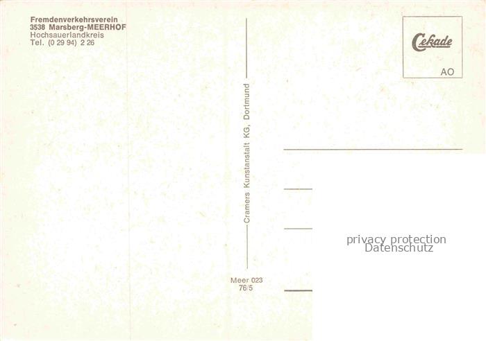74138838 Meerhof Eggegebirge Marsberg Hochsauerlandkreis NRW Panorama Waldweg Ehrenmal Parkbank Laurentiuskirche postalisch nicht gelaufen Erhaltung siehe scans [FriedD77] KatCode: 11110005958024