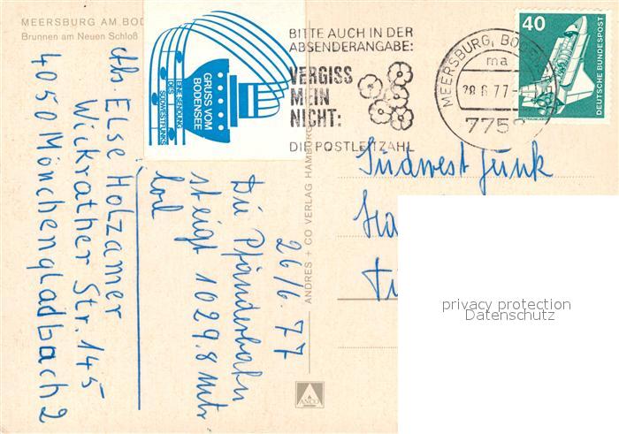 73335212 alte Postkarte Meersburg Bodensee Brunnen am Neuen Schloss postalisch gelaufen Erhaltung siehe scans [WerneD78] KatCode: 11110008435036