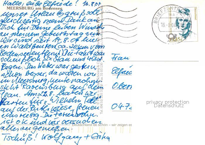 72859222 alte Postkarte Meersburg Bodensee Bundesbahnhafen Freibad Schloss Steigstr Obertor Unterstadttor Weinstaatsgut Neues Schloss Fuerstenhaeuschen Schnabelgiere Brunnen Schlossplatz postalisch gelaufen Erhaltung siehe scans [WerneD78] KatCode: 11110008435036