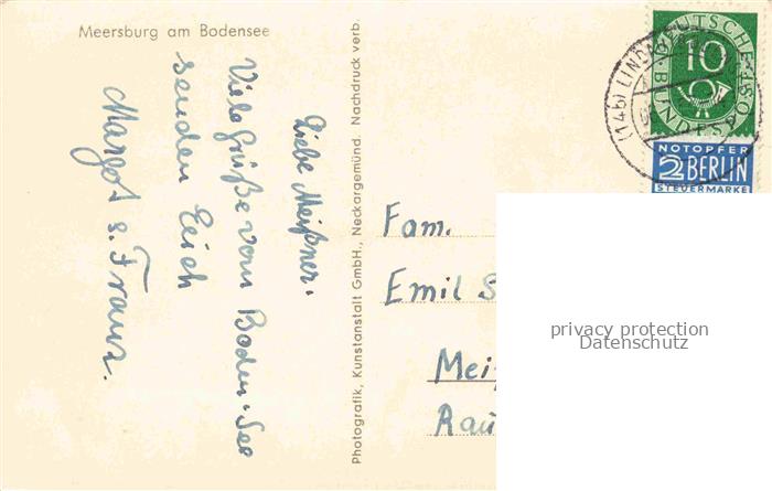 74121944 MEERSBURG Bodensee BW Ansicht vom See aus Segelboot postalisch gelaufen Erhaltung siehe scans [FriedD77] alte Postkarte Frie Katcode 11110008435036