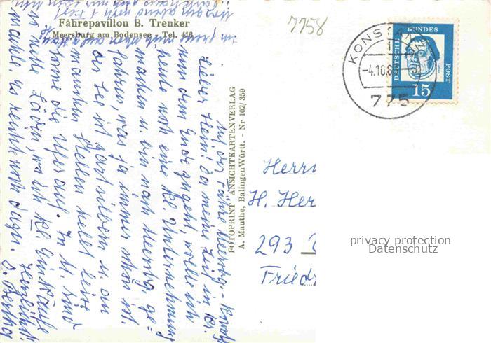74060132 alte Postkarte MEERSBURG Bodensee BW Faehrepavillon Trenker postalisch gelaufen Erhaltung siehe scans [WerneD78] KatCode: 11110008435036