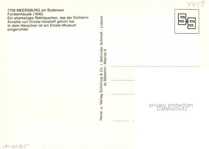 72912210 Meersburg Bodensee Droste Huelshoff Fuerstenhaeusle postalisch nicht gelaufen Erhaltung siehe scans [LiesaD40] KatCode: 11110008435036