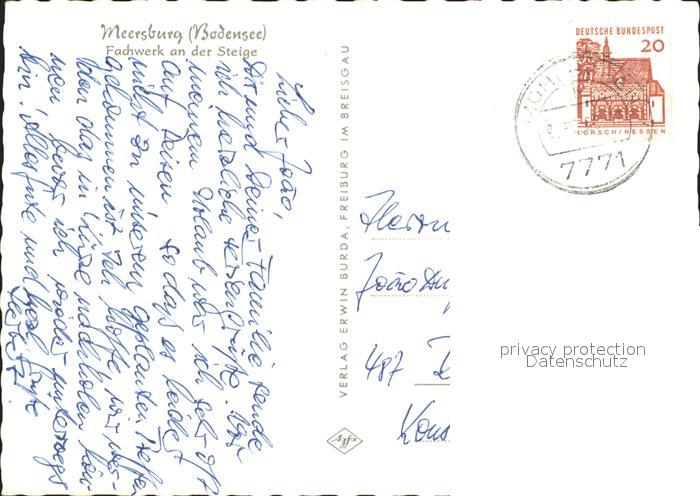 72283644 alte Postkarte Meersburg Bodensee Fachwerk an der Steige postalisch gelaufen Erhaltung siehe scans KatCode: 11110008435036