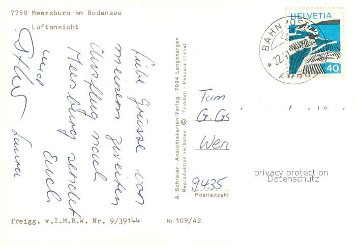 72951762 alte Postkarte Meersburg Bodensee Fliegeraufnahme postalisch gelaufen Erhaltung siehe scans [NatalD47] KatCode: 11110008435036