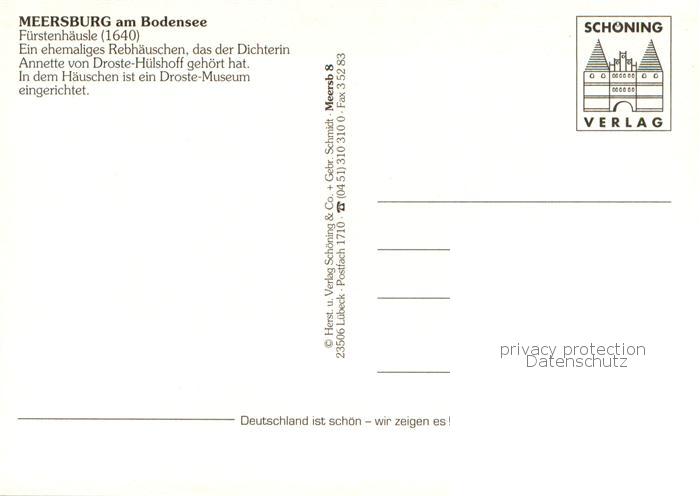 73785324 Meersburg Bodensee Fuerstenhaeusle Dichterin Annette von Droste-Huelshoff Museum postalisch nicht gelaufen Erhaltung siehe scans [FriedD77] KatCode: 11110008435036