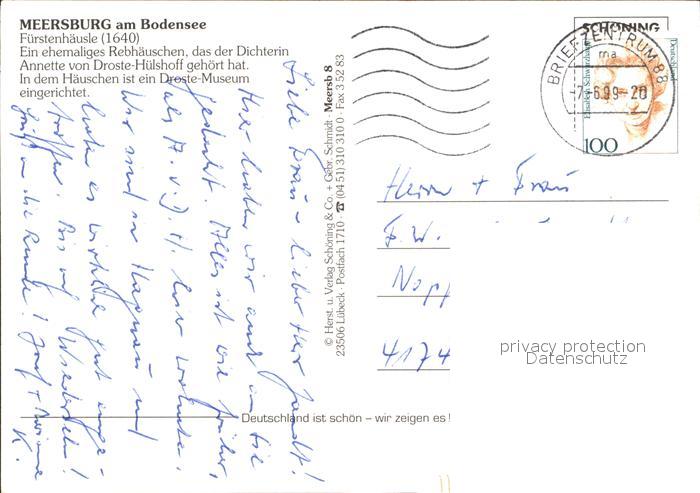 72375583 alte Postkarte Meersburg Bodensee Fuerstenhaeusle Droste-Huelshoff postalisch gelaufen Erhaltung siehe scans KatCode: 11110008435036