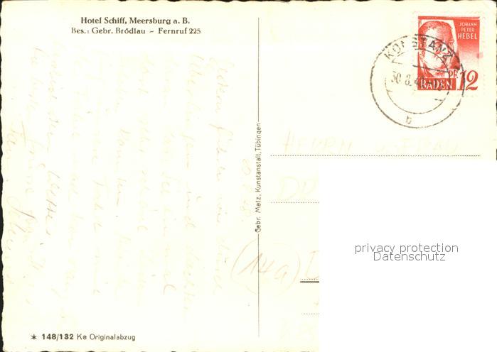 71539505 alte Postkarte Meersburg Bodensee Hotel Schiff Schloss postalisch gelaufen Erhaltung siehe scans KatCode: 11110008435036