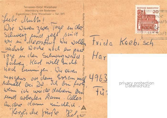 73720675 alte Postkarte Meersburg Bodensee Hotel Weisshaar Terrasse postalisch gelaufen Erhaltung siehe scans [FriedD77] KatCode: 11110008435036