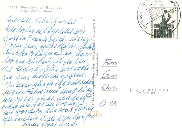 73101112 alte Postkarte Meersburg Bodensee Hotel Wilder Mann postalisch gelaufen Erhaltung siehe scans [WerneD78] KatCode: 11110008435036