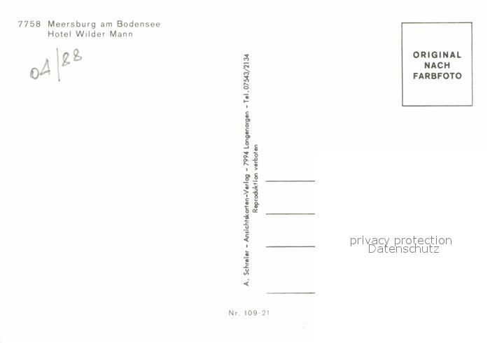 72786592 Meersburg Bodensee Hotel Wilder Mann postalisch nicht gelaufen Erhaltung siehe scans [LiesaD40] KatCode: 11110008435036