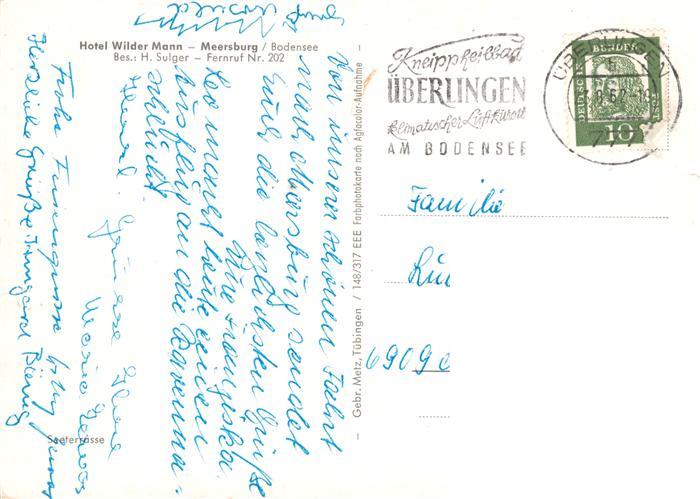 73886920 alte Postkarte Meersburg Bodensee Hotel Wilder Mann Terrasse postalisch gelaufen Erhaltung siehe scans [WerneD78] KatCode: 11110008435036