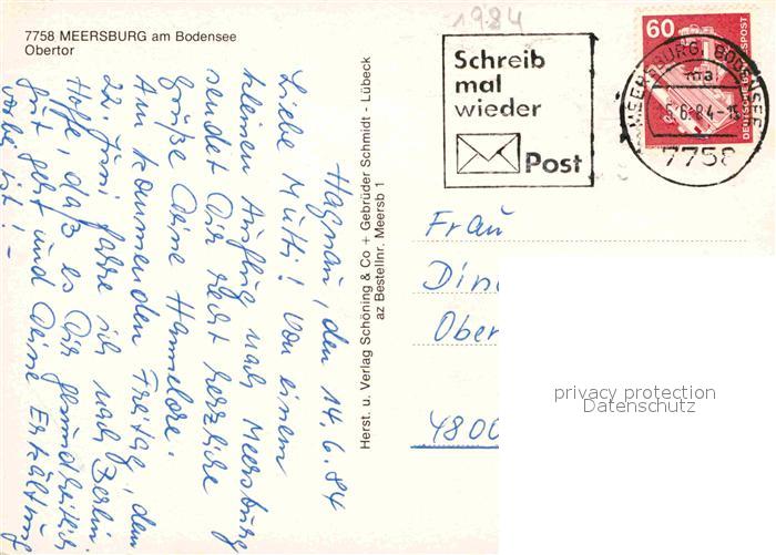 72912037 alte Postkarte Meersburg Bodensee Obertor postalisch gelaufen Erhaltung siehe scans [NatalD47] KatCode: 11110008435036