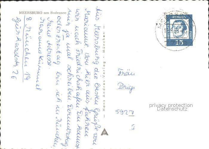 72176823 alte Postkarte Meersburg Bodensee Partie am See mit Alpen postalisch gelaufen Erhaltung siehe scans KatCode: 11110008435036