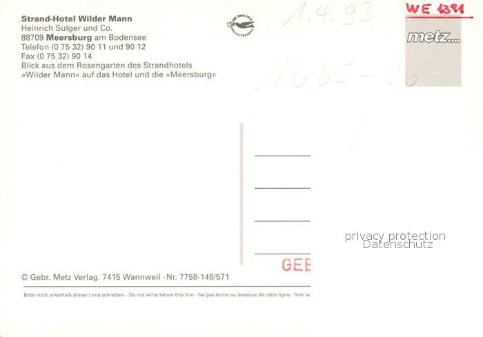 73717975 alte Postkarte Meersburg Bodensee Strand Hotel Wilder Mann postalisch gelaufen Erhaltung siehe scans [WerneD78] KatCode: 11110008435036
