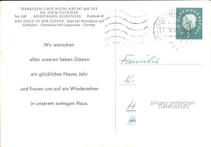 72128650 alte Postkarte Meersburg Bodensee Terrassen Cafe Hotel Hecht am See postalisch gelaufen Erhaltung siehe scans KatCode: 11110008435036