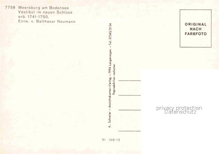 72691335 Meersburg Bodensee Vestibuel im neuen Schloss 18. Jhdt. Balthasar Neumann postalisch nicht gelaufen Erhaltung siehe scans [FriedD77] KatCode: 11110008435036