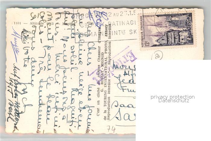 13489783 carte postale Megeve Blick ins Tal Winterpanorama Alpen postalisch gelaufen Erhaltung siehe scans [FriedD77] KatCode: 11170074274173
