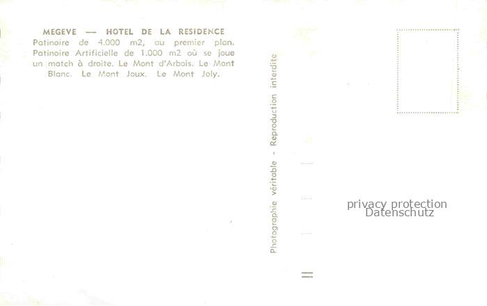 34144514 Megeve Bonneville 74 Haute-Savoie Hotel de la Residence Eislaufbahn Wintersportplatz Alpen postalisch nicht gelaufen Erhaltung siehe scans [FriedD77] KatCode: 11170074274173