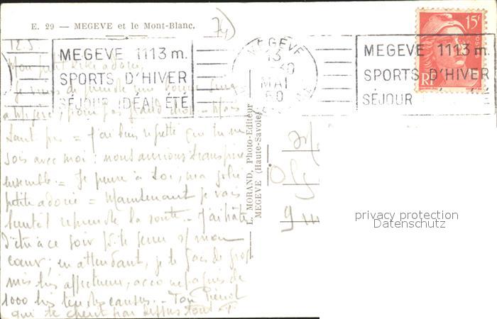 12138826 carte postale Megeve mit Mont Blanc postalisch gelaufen Erhaltung siehe scans KatCode: 11170074274173