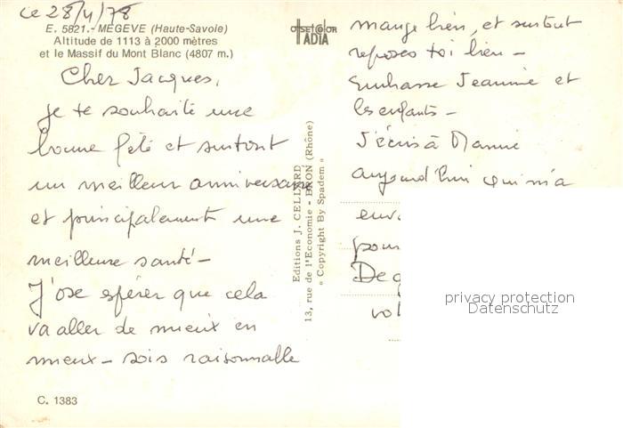 13640214 Megeve Panorama Blick zum Mont Blanc Massif Ortsmotiv Turm KatCode 11170074274173
