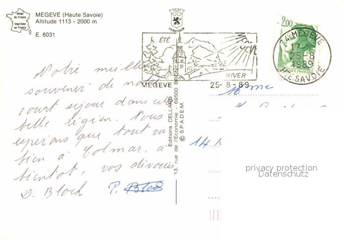 12892737 carte postale Megeve Panorama mit Mont Blanc postalisch gelaufen Erhaltung siehe scans [AndreD76] KatCode: 11170074274173