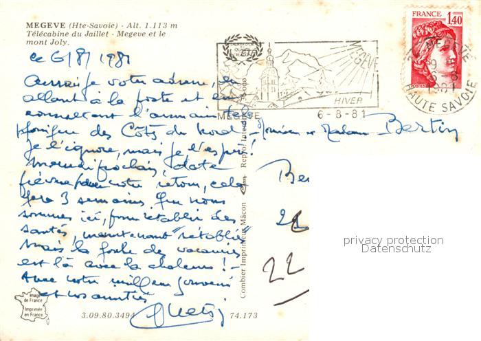 13236922 carte postale Megeve Seilbahn Mont Joly postalisch gelaufen Erhaltung siehe scans [KathaD81] KatCode: 11170074274173