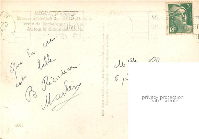 13640241 Megeve Skieurs a l’arrivée au téléférique de la croix de Rochebrune Chaîne des Aravis Alpes postalisch gelaufen Erhaltung siehe scans [FriedD77] carte postale Frie Katcode 11170074274173