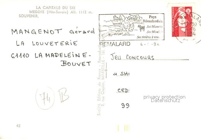 13225511 carte postale Megeve Skigebiet Winter postalisch gelaufen Erhaltung siehe scans [KathaD81] KatCode: 11170074274173