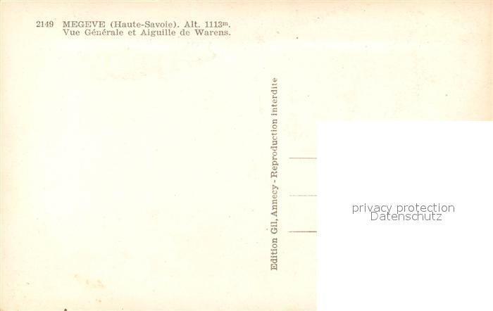 13299142 Megeve Vue generale et Aiguille de Warens postalisch nicht gelaufen Erhaltung siehe scans [WerneD78] KatCode: 11170074274173