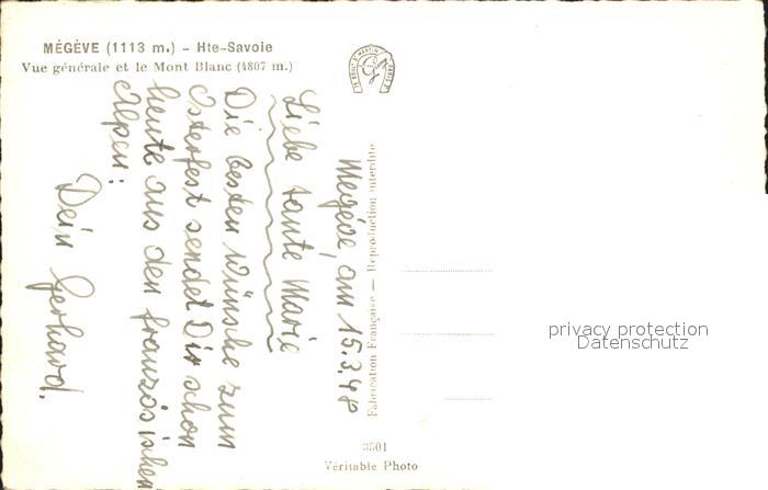 11903190 Megeve Vue generale et le Mont Blanc postalisch nicht gelaufen Erhaltung siehe scans KatCode: 11170074274173