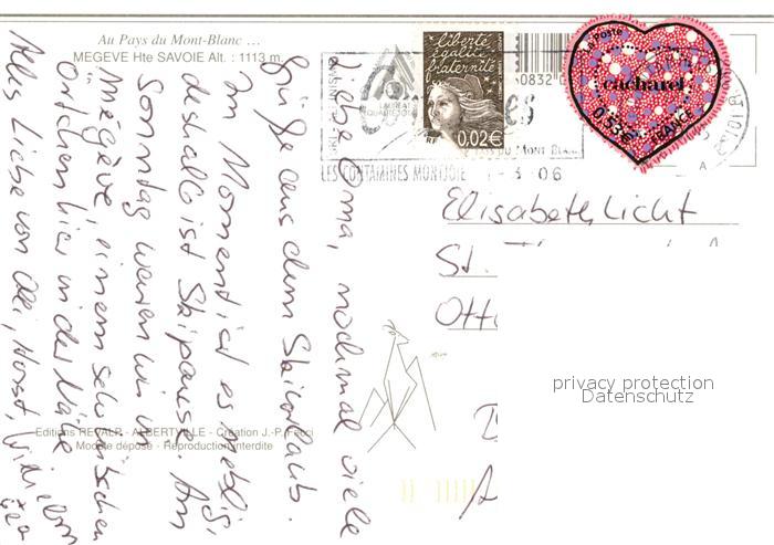 13607153 carte postale Megeve Winterimpressionen Pferdeschlitten Murmeltiere postalisch gelaufen Erhaltung siehe scans [FriedD77] KatCode: 11170074274173