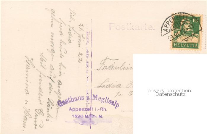 13794533 alte Postkarte Meglisalp 1520m Altmann AR Meglisalp m. d. Saentisweg postalisch gelaufen Erhaltung siehe scans [LiesaD40] KatCode: 11470280010736
