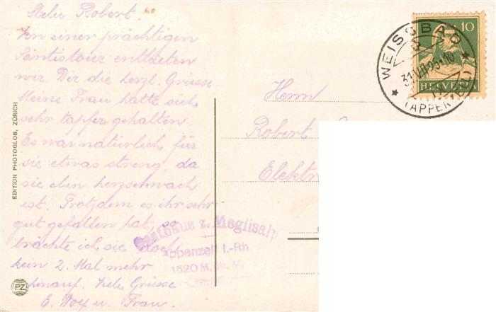13920617 alte Postkarte Meglisalp 1520m Altmann AR mit Kirche Altmann und Saentis postalisch gelaufen Erhaltung siehe scans [WerneD78] KatCode: 11470280010736
