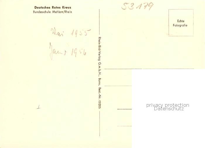 73864003 Mehlem Godesberg Bonn DRK Bundesschule postalisch nicht gelaufen Erhaltung siehe scans [WerneD78] KatCode: 11110005314000
