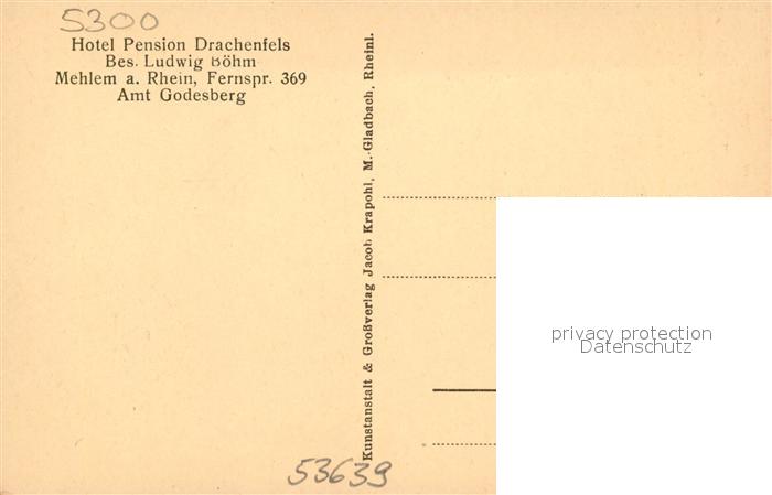 43155525 Mehlem Godesberg Hotel Pension Drachenfels Rheinblick postalisch nicht gelaufen Erhaltung siehe scans [KathaD81] KatCode: 11110005314000