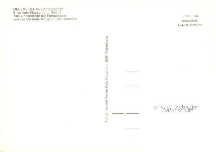 73143700 Mehlmeisel Panorama Blick vom Klausenturm zum Ochsenkopf Fernsehturm Fichtelgebirge postalisch nicht gelaufen Erhaltung siehe scans [FriedD77] KatCode: 11110009472164
