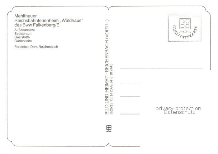73739824 Mehltheuer Vogtland Reichsbahnferienheim Waldhaus Speiseraum Gaststaette Garten postalisch nicht gelaufen Erhaltung siehe scans [WerneD78] KatCode: 11110014178350