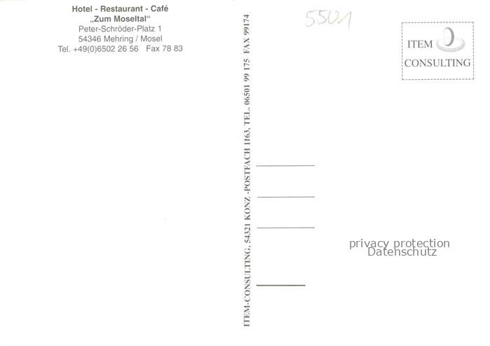 74053434 Mehring Mosel Hotel Restaurant Café Zum Moseltal Gastraum Terrasse Angeln Fahrgastschiff postalisch nicht gelaufen Erhaltung siehe scans [FriedD77] KatCode: 11110007235083