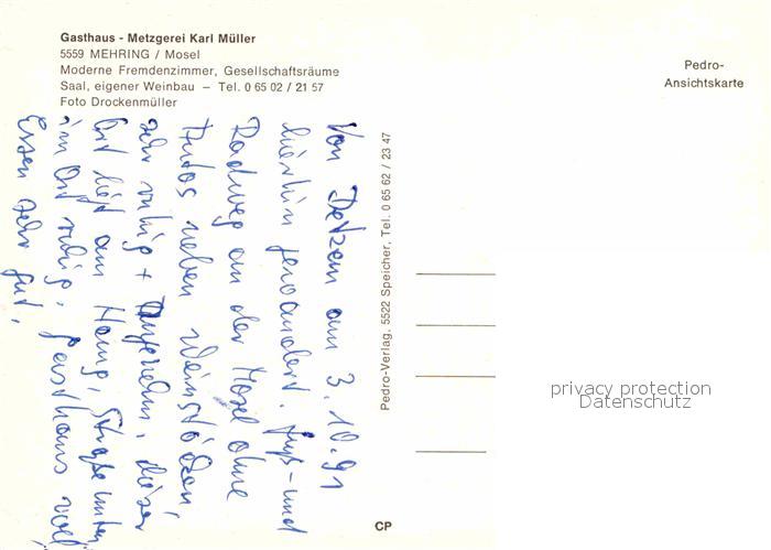 72904600 Mehring Mosel Panorama postalisch nicht gelaufen Erhaltung siehe scans [FriedD77] KatCode: 11110007235083