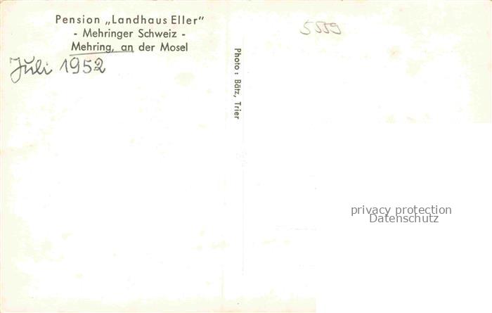 34144562 Mehring Mosel Rheinland-Pfalz Pension Landhaus Eller Mehringer Schweiz postalisch nicht gelaufen Erhaltung siehe scans [FriedD77] KatCode: 11110007235083