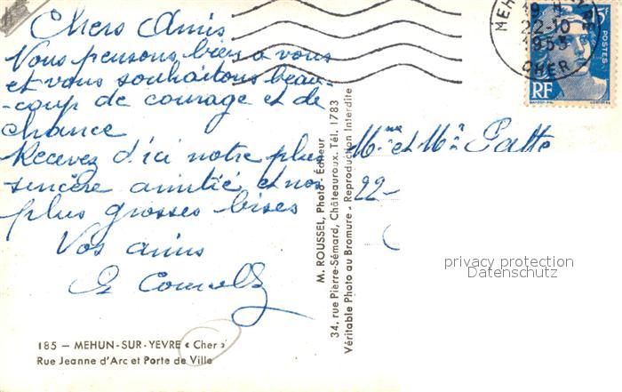 13578675 carte postale Mehun-sur-Yevre Rue Jeanne d Arc et Porte de Ville postalisch gelaufen Erhaltung siehe scans [FriedD77] KatCode: 11170018318141