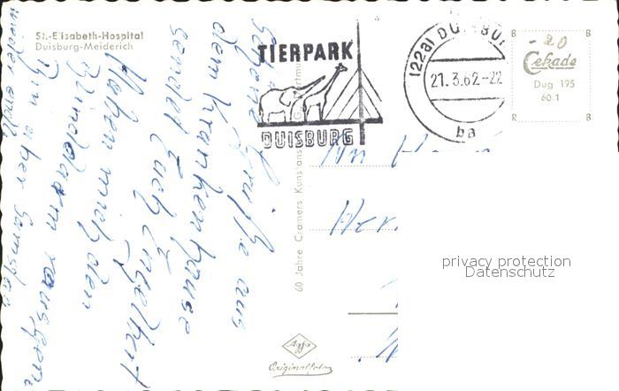 72296336 alte Postkarte Meiderich Duisburg St Elisabeth Hospital postalisch gelaufen Erhaltung siehe scans KatCode: 11110005112000