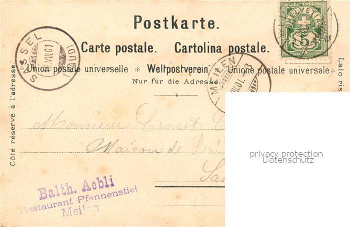 13566812 alte Postkarte Meilen Gasthaus Pfannenstiel Oken-Denkmal Bergpanorama postalisch gelaufen Erhaltung siehe scans [KathaD81] KatCode: 11470260895368
