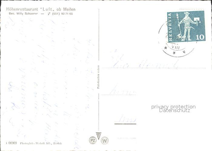 11655687 alte Postkarte Meilen ZH Hoehenrestaurant Luft postalisch gelaufen Erhaltung siehe scans KatCode: 11470260895368