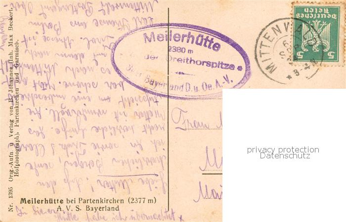 73818234 alte Postkarte Meilerhuette 2377m Garmisch-Partenkirchen Ansicht postalisch gelaufen Erhaltung siehe scans [WerneD78] KatCode: 11110009180117