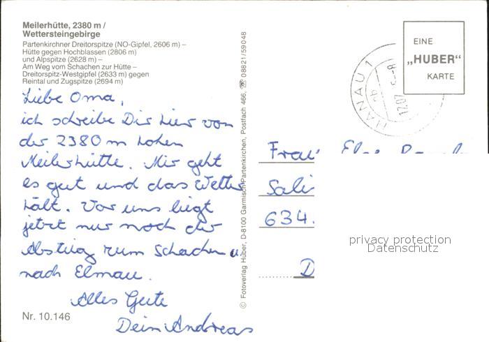 72454736 alte Postkarte Meilerhuette Wettersteingebirge Dreitorspitze Hochblassen Alpspitze Gipfelkreuz postalisch gelaufen Erhaltung siehe scans KatCode: 11110009180117