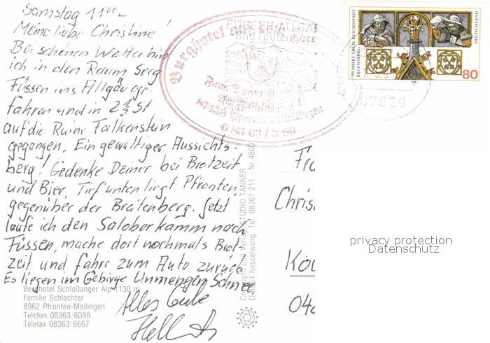 72752427 alte Postkarte Meilingen Berghotel Schlossanger Alp auf dem Falkenstein Burgruine Felsen postalisch gelaufen Erhaltung siehe scans [FriedD77] KatCode: 11110009777159