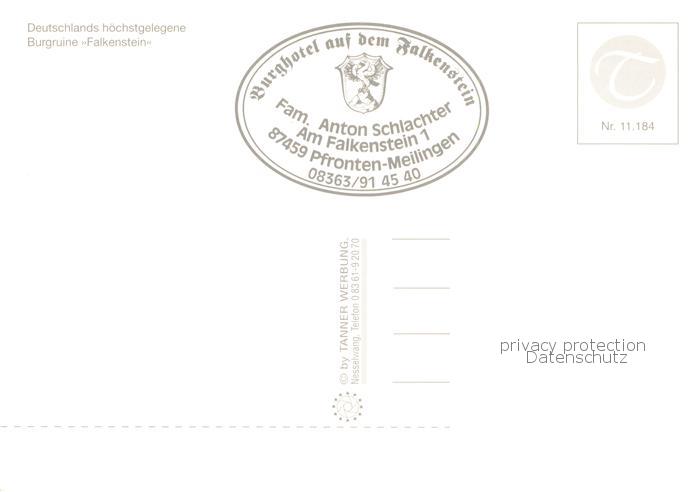 73776722 Meilingen Pfronten Burghotel auf dem Falkenstein postalisch nicht gelaufen Erhaltung siehe scans [WerneD78] KatCode: 11110009777159
