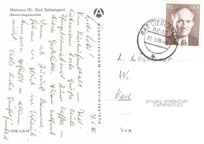 72728593 alte Postkarte Meimers Bad Liebenstein Gemeindegaststaette postalisch gelaufen Erhaltung siehe scans [FriedD77] KatCode: 11110016063002