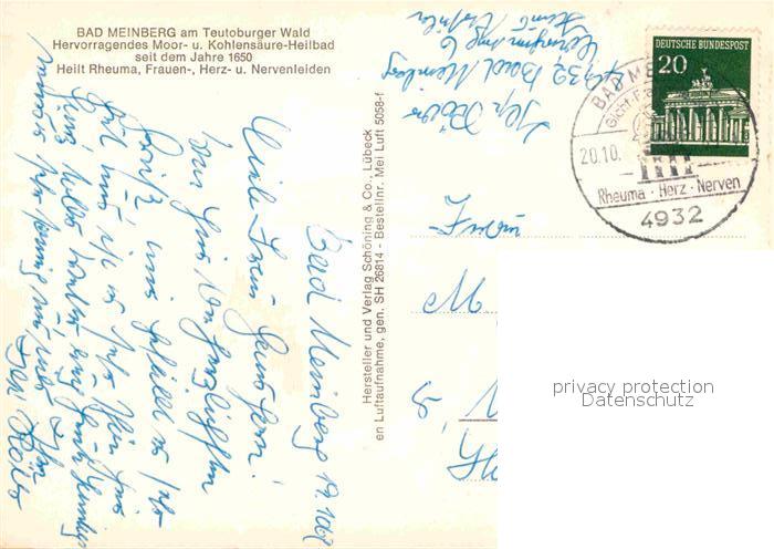 72796680 alte Postkarte Meinberg Bad Kur Luftaufnahme postalisch gelaufen Erhaltung siehe scans [KathaD81] KatCode: 11110005766032